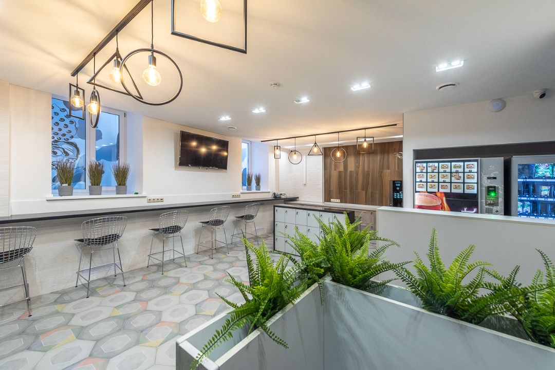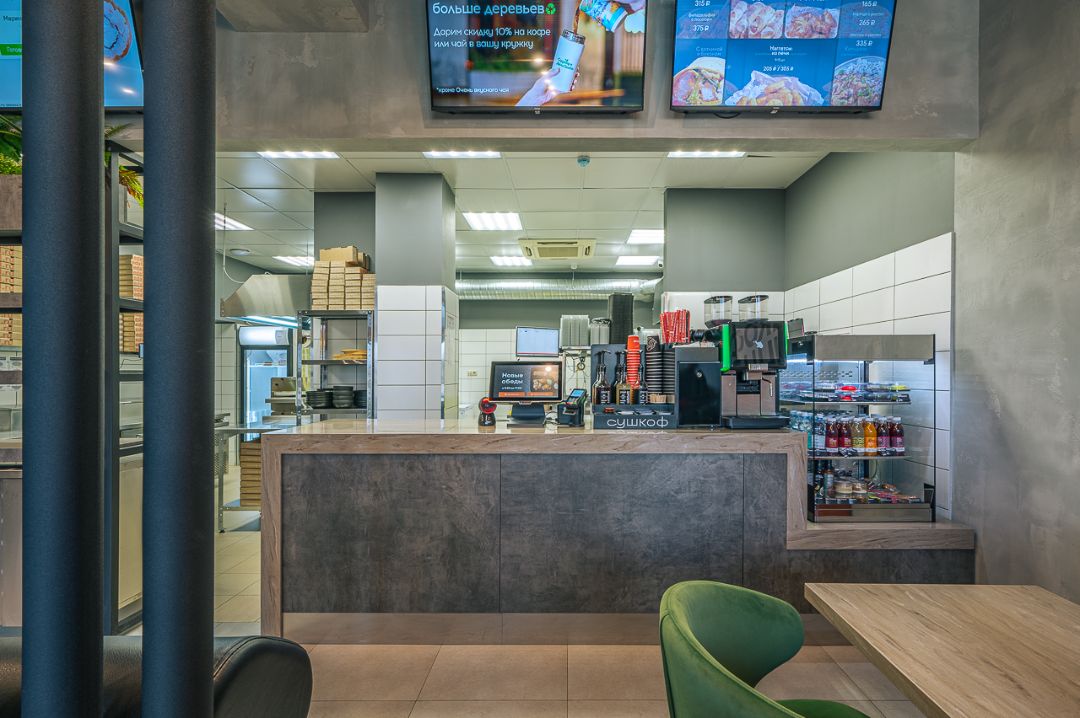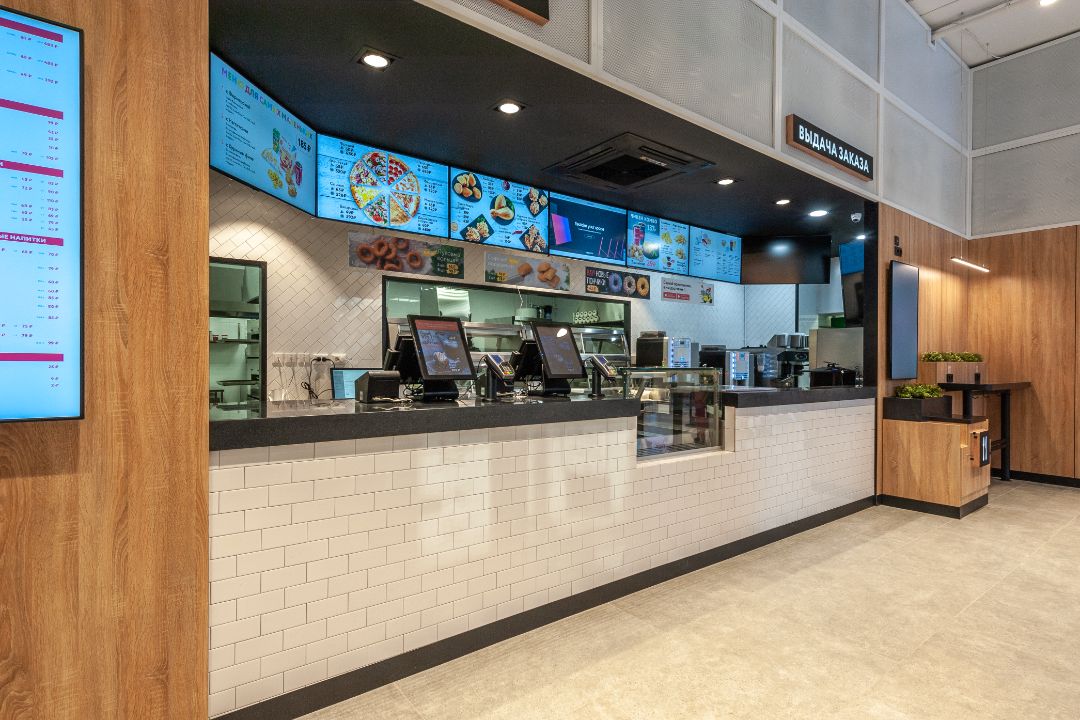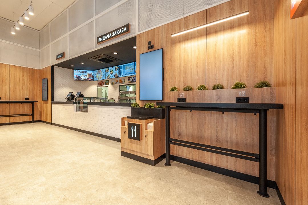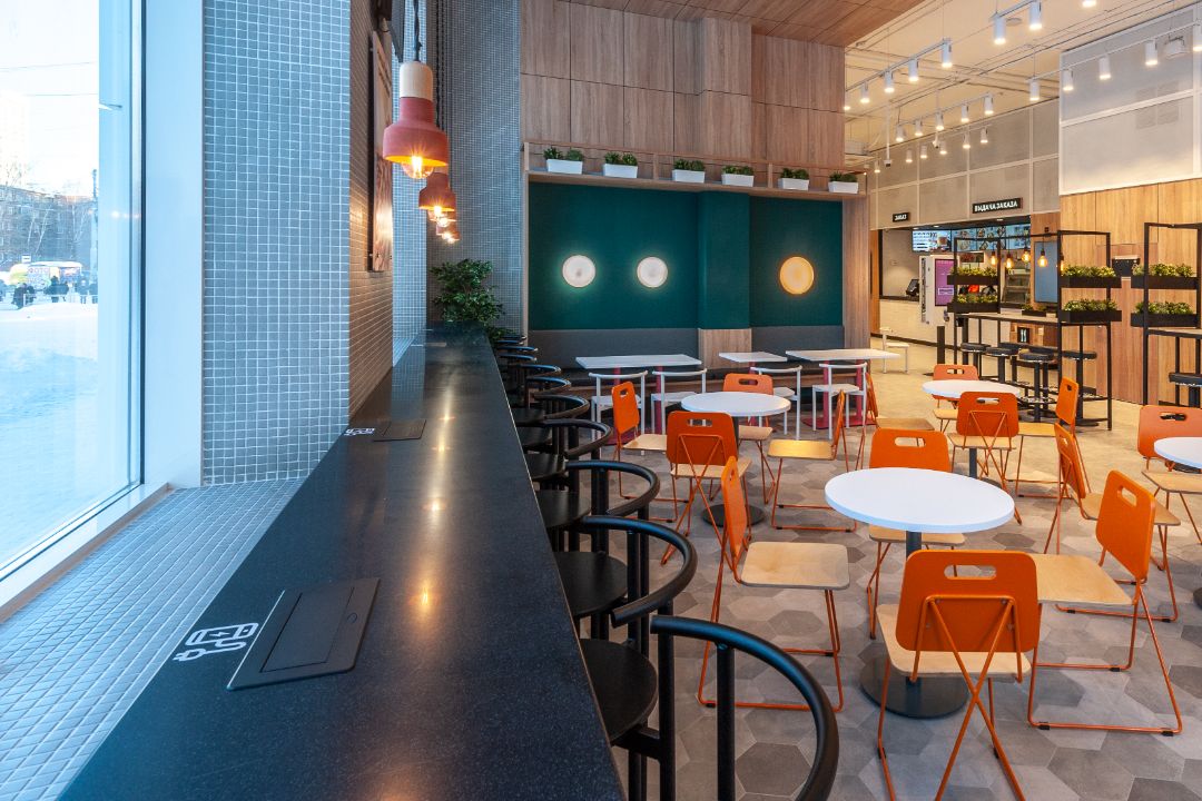 Это не только строгое соблюдение корпоративных стандартов сети и повышенные требования к износостойкости материалов, но и безупречная реализация проекта в установленные сроки. Всё удалось: лёгкость в каждой детали, столешницы из искусственного камня с высоким запасом прочности и сроком службы до 25 лет. Получилось стильно, надёжно и с заботой о гостях.