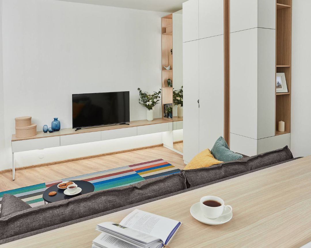 Учли пожелания по созданию универсальной меблировки квартиры: практичные материалы, современные цвета и лаконичный дизайн. Главная задача — сформировать понятный и комфортный интерьер, в котором можно жить сразу после покупки квартиры. Решение сочетают функциональность, стиль и удобство повседневного использования.